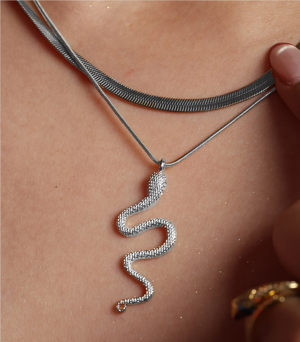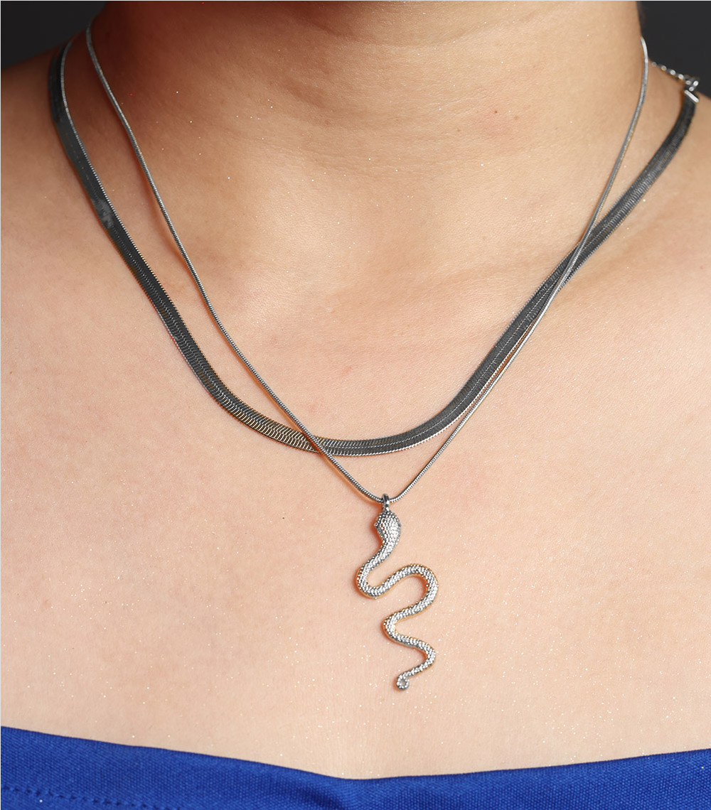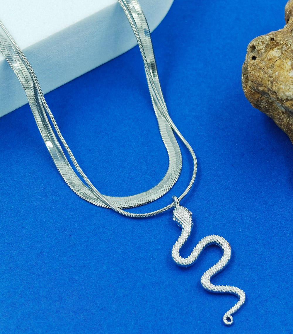 Serpent Flow Party Wear Silver Necklace For Women